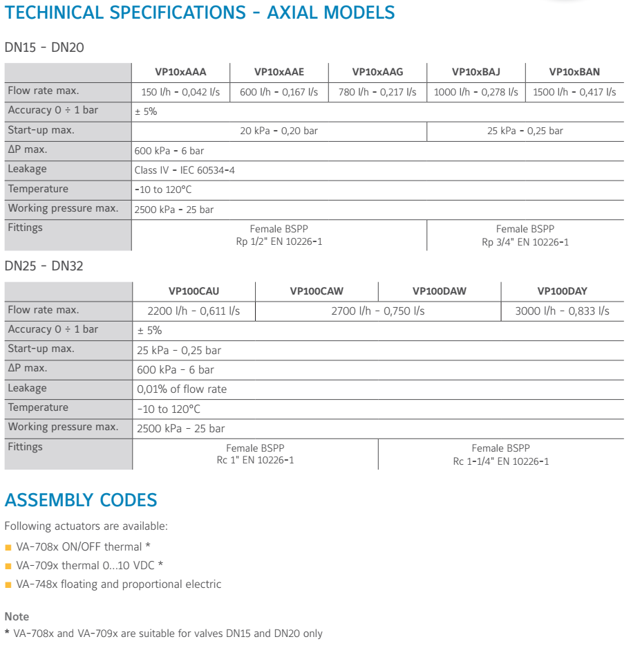 DN15...32, PN25 - DN50, PN16 VP1000 pressure independent control valve is a combination of a differential pressure regulator and a regulating valve for flow adjustment. VP1000 valve allows to adjust the flow rate also in case of partial load of the system and it always ensures a stable adjustment of the supply connected to it. The differential pressure regulator corrects any differential pressure variation. This leads to a considerable reduction in temperature variations and adjustment moveme