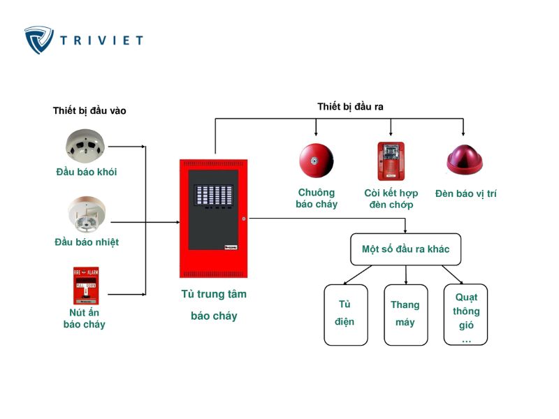 Khi tủ trung tâm nhận được tín hiệu báo cháy xác thực, các thiết bị đầu ra như còi, chuông, đèn báo, loa thông báo sẽ được kích hoạt. Ngoài ra, hệ thống còn có thể liên động với các cơ chế an toàn khác như quạt hút khói, cửa chống cháy tự động hoặc hệ thống thông báo bằng giọng nói.