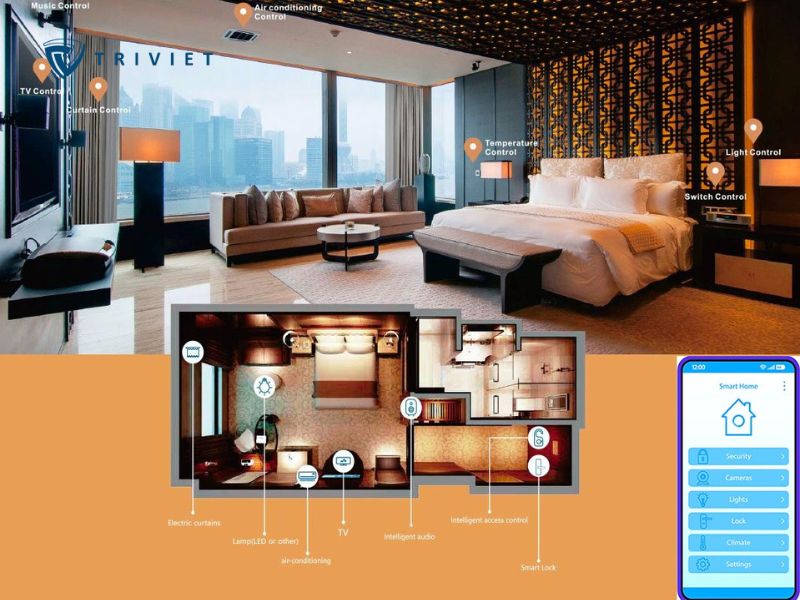 - Nâng cao trải nghiệm khách hàng: Hệ thống Smart Hotel cho phép khách điều khiển thiết bị trong phòng qua ứng dụng hoặc bảng trung tâm, mang lại sự tiện nghi và hiện đại.