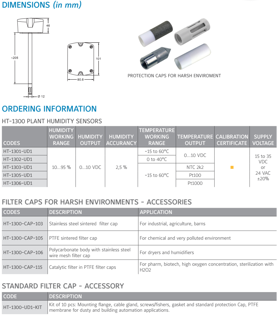 The HT-130x-UD1 employs the new humidity/temperature sensor with excellent long-term stability and resistance to