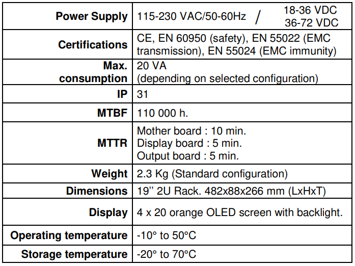 • Power Supply Redundancy 18-36 or 36-72 VDC with 115-230 VAC.