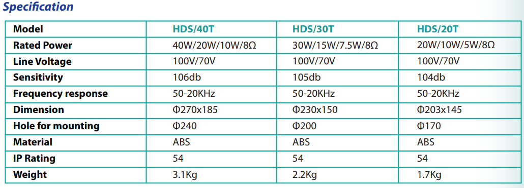 The Heinrich HDS SERIES HEINRICH all speakers support EASE, CATT, ULYSSES models for acoustic studies. This means the acoustic model can be designed to simulate the sound quality and distribution prior to installation. All HEINRICH loudspeaker have undergone trough testing procedure to ensure that all products compliance with LOW VOLTAGE DIRECTIVE (BS EN 60065, 2003) and EMC (BS EN 61000-6-Part 1/2/3/4). These speakers could be easy fitted in round cut out using 4T-bar support.