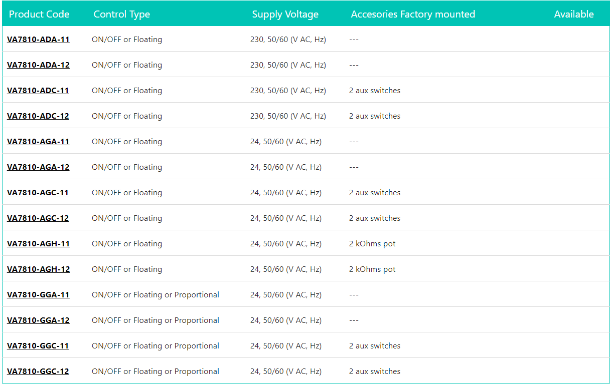 Floating and Proportional Control The VA7810 non spring return actuator with 1000 N thrust for valves in heating, ventilation and air conditioning applications is available for floating or proportional control. All models have manual override as standard and provide stroke capabilities of 7 mm to 25 mm. Proportional models are self-calibrating.